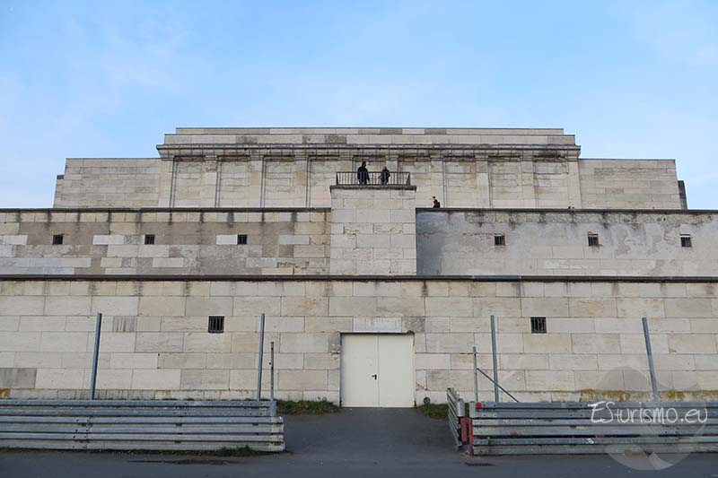 Todo el campo está dominado por una tribuna que se construyó con ladrillos rojos, pero ante el impacto visual que esto tendría con el resto del conjunto se cubrieron los exteriores con losas de piedra caliza. En el año 1936 la Zeppelintribüne aún no estaba terminada, por lo que Speer optó por colocar una enorme águila imperial de madera provisional.