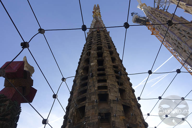 Iniciamos el recorrido por este famoso monumento comenzando por su parte externa. Lo primero que salta a la vista son las torres del templo, las cuales cumplen varias funciones: además de tener un propósito práctico, aportan valor estético y, sobre todo, poseen un profundo significado simbólico. La Sagrada Familia no es un templo convencional, en ella las torres no se limitan a decorar o a impresionar, sino que Gaudí concibió un conjunto de dieciocho torres con una intención simbólica muy precisa: cada una debía tener una identidad propia.