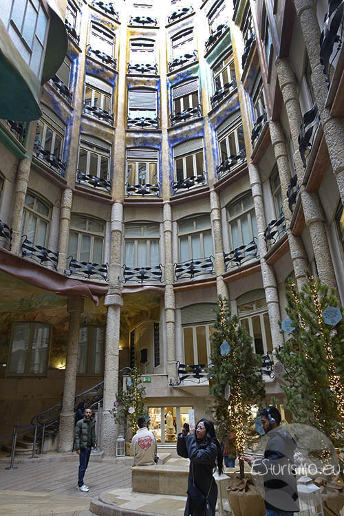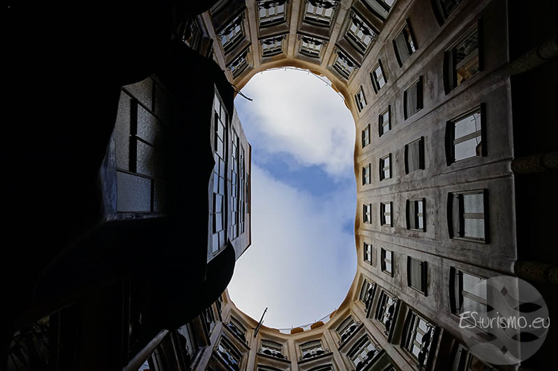 Por otro lado, Gaudí utilizó aquí una gradación cromática, es decir tonos más oscuros en la parte inferior y más claros en los niveles superiores de las fachadas, para mejorar la reflexión de la luz hacia el interior. Además, la visión desde los patios permite apreciar que desde aquí las columnas y los balcones parecen crecer como troncos y ramas. En definitiva, en La Pedrera nada es recto y todo fluye como en la naturaleza, la mayor fuente de inspiración de Gaudí.
