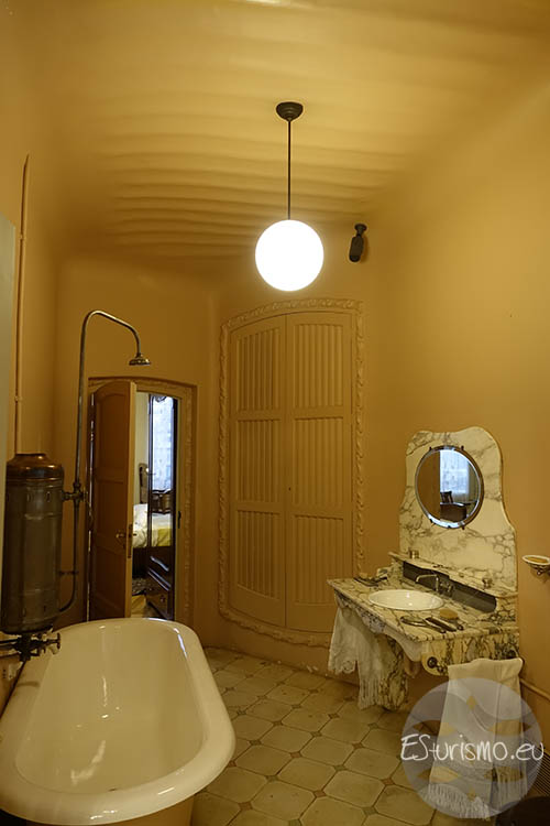 El baño principal de la Casa Milà destacaba por su nivel de sofisticación, de nuevo poco común en aquellos años. Gaudí supo unir belleza y practicidad en un mismo espacio, incorporando una generosa bañera de porcelana, grifos metálicos y un sistema de calentamiento de agua que hacía posible algo excepcional para la época: disfrutar de agua caliente a principios del siglo XX. Cada elemento fue diseñado pensando en el bienestar, reflejando cómo el arquitecto prestaba la misma atención artística incluso a los rincones más íntimos de la vivienda.