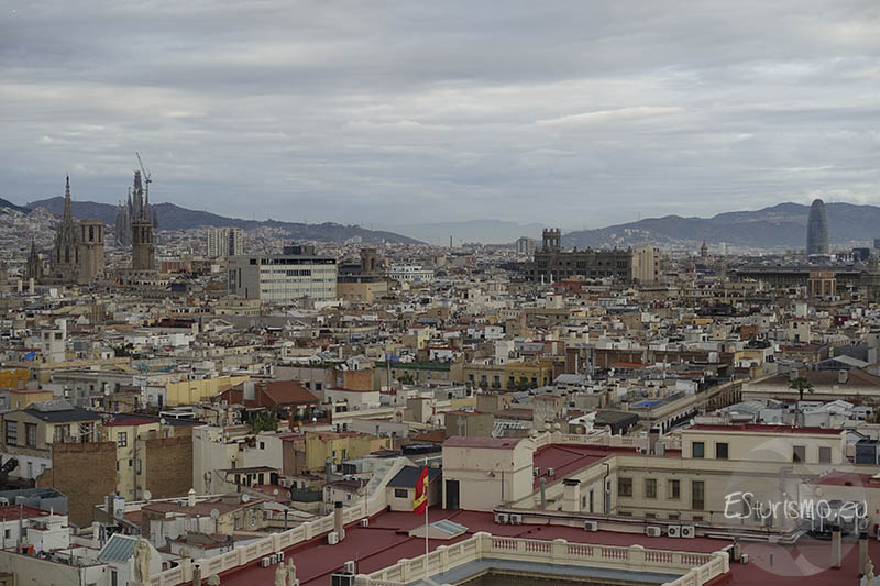 Desde allí, las vistas panorámicas de 360 grados permiten descubrir distintos rincones de la ciudad según hacia dónde se mire. A grosso modo, hacia el norte se distinguen el barrio Gótico con sus edificios históricos, la catedral, la iglesia de Santa María del Mar, Las Ramblas (situadas justo debajo) e incluso, a lo lejos, las cúpulas de la Sagrada Familia. Si se observa hacia el sur, aparecen la montaña de Montjuïc y el conocida como Anillo Olímpico. Mirando al este se alcanzan a ver el Fòrum (reconocible por su distintiva placa fotovoltaica), las torres gemelas que marcan la entrada al puerto Olímpico y hasta el famoso pez dorado diseñado por Frank Gehry. Por el lado oeste, el paisaje se completa con la sierra de Collserola y la emblemática montaña del Tibidabo.