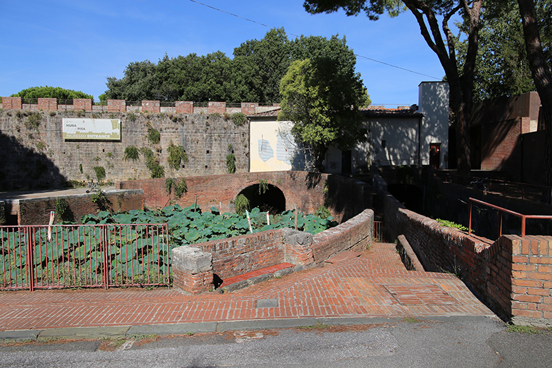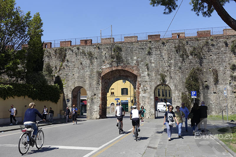 Tras pasar por encima de la Porta Santa Marta llegamos a un punto desde el que podemos ver tres sitios importantes: el tramo final del acueducto de los Medici (levantada entre los siglos XVI y XVII) que se funde con las murallas de la ciudad; la Piazza delle Gondole que fue en la Edad Media un pequeño puerto fluvial, además de ser el lugar donde se encontraba una fuente barroca del siglo XVII que fue la primera en recibir el caudal del acueducto; y finalmente el Fosso del Mulino que es un canal artificial que arranca del río Serchio, a la altura de Ripafratta y, tras 12 kilómetros, se une con el río Arno.