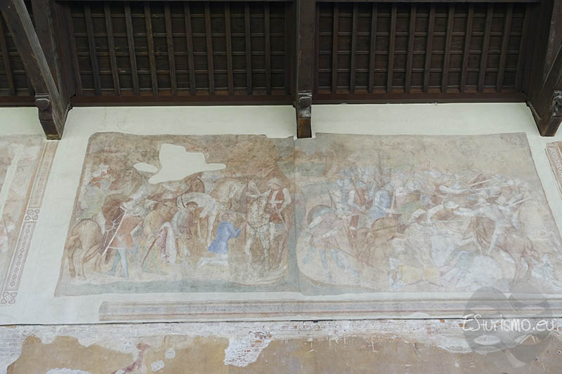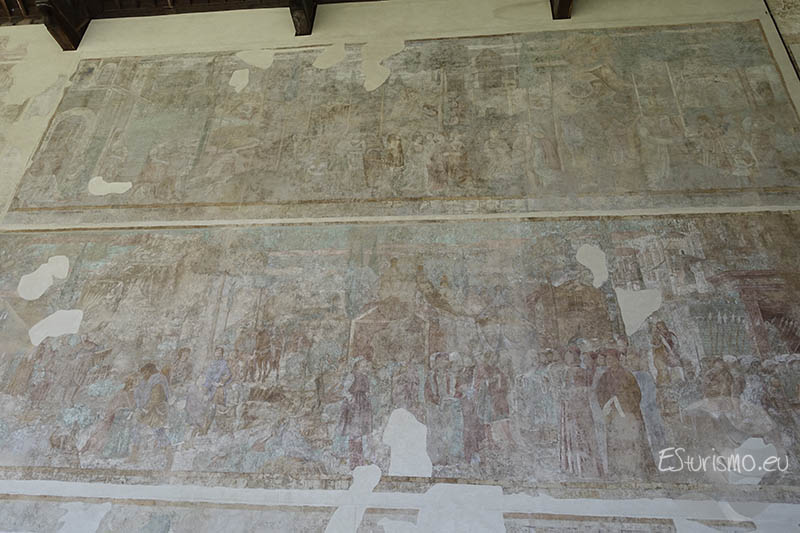 Seguimos con el ciclo pictórico del Antiguo Testamento, ahora vemos las historias bíblicas de Abraham, Isaac y Jacob, aunque muchos de ellos están deteriorados: en la parte baja se narra cómo Abraham, puesto a prueba en el monte Moriah, estuvo a punto de sacrificar a su hijo Isaac, pero un ángel intervino, confirmando así su fe y obediencia. En la parte superior se representa la celebración de la unión de Isaac y Rebeca en un banquete solemne con música y ceremonia. Por su parte, en las Historias de Esaú y Jacob, éste último, con astucia, obtiene primero la primogenitura de su hermano Esaú y luego engaña a su padre Isaac para quedarse con la bendición, provocando la ira y el desconcierto de su hermano. El siguiente fresco, situado en la zona superior, cuenta cómo Jacob sueña con una escalera que une la tierra con el cielo. Después se representa el encuentro con Raquel, su huida de Labán y finalmente lucha con Dios, quien lo bendice y le da un nuevo nombre: Israel. En el tercer fresco vemos el encuentro de Jacob y Esaú, quienes se reconcilian tras mucho tiempo de conflicto. Poco después ocurre el secuestro de Dina, lo que desemboca en una venganza sangrienta contra los raptores, destacando la representación de los guerreros y los retratos de sus coetáneos.