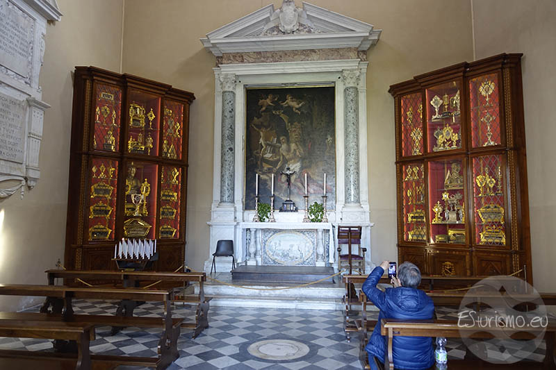 La capilla, que en ocasiones es utilizada para celebrar misa, alberga además varias reliquias sagradas, la mayoría trasladados aquí en 2009 desde el Duomo, como fragmentos de once apóstoles, la Vera Cruz y un trozo del manto de la Virgen. Para poder ubicar cada una de las reliquias es especialmente útil los letreros colocados en la pared, a ambos lados de los armarios expositores.