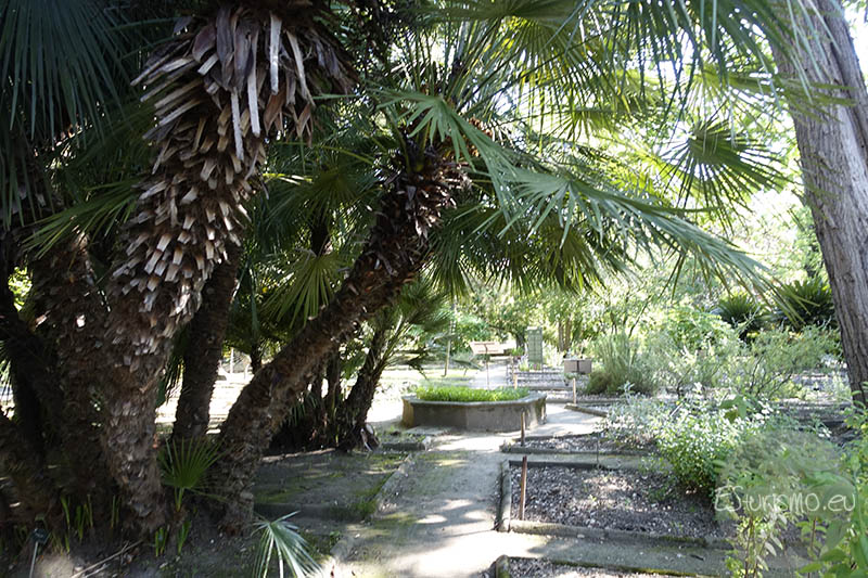 Ya hemos terminado las visitas a los invernaderos, por lo que ahora desembocamos en la Piazzale Arcangeli, la plaza central que se encuentra decorada con flores y palmeras (Jubaea chilensis) plantadas aquí a finales del siglo XIX, aunque una de ellas fue reemplazada en fechas reciente tras haber sufrido el ataque del picudo rojo (Rhynchophorus ferrugineus). Pero el elemento que quizás más llame la atención es el edificio del Herbario y la sala de jardineros. El Herbario (Herbarium Horti Botanici Pisani) es un depósito científico de primer orden, con aproximadamente unos 350.000 ejemplares de plantas secas, colección esencial para investigadores y con acceso por consulta, aunque también existe un “erbario digital” consultable.