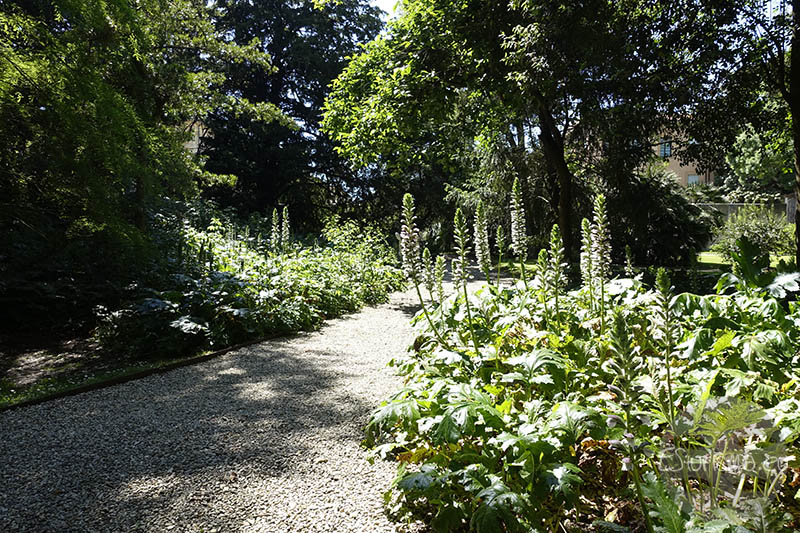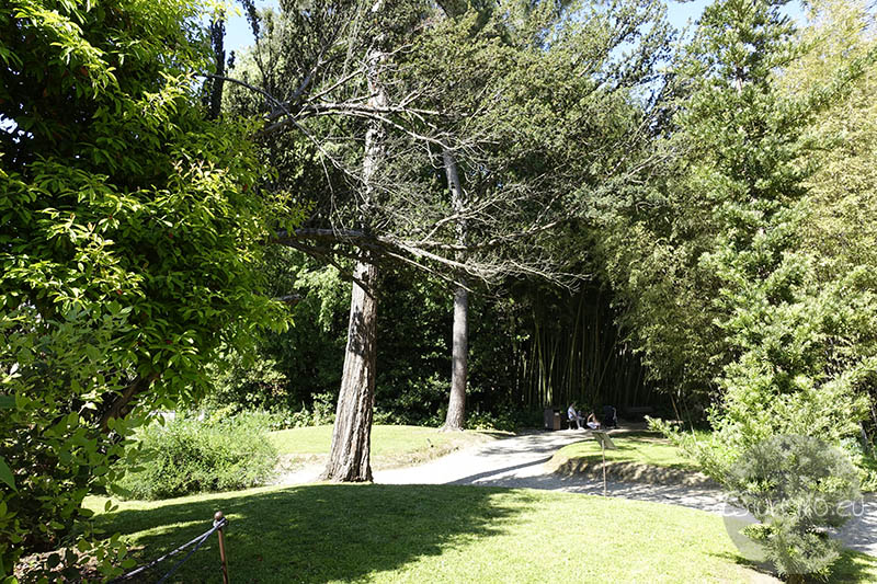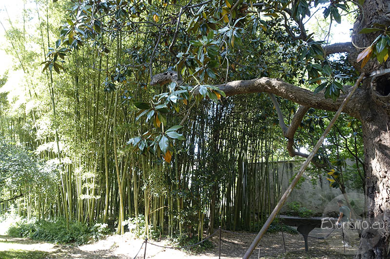 Empezamos ya el recorrido por el Orto Nuovo (Jardín Nuevo), creado a partir de un terreno adquirido por Gaetano Savi en 1841. Este espacio verde se utiliza principalmente como arboreto, es decir acoge árboles de gran porte, viales y praderas. Aquí se pueden encontrar especies singulares como la “canfora” plantada en 1872 y otros ejemplares de gran envergadura. En marzo de 2017 se plantó una “Wollemia nobilis” (especie rara originaria de Australia) donada por la familia Del Gratta. Además, este huerto también cuenta con un pequeño bosque de bambús, cuya zona interna también es posible recorrer.