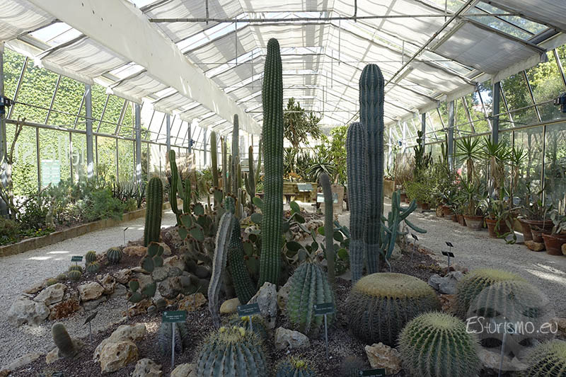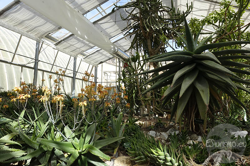 Llegamos ya a la zona de los invernaderos, los cuales están situados más o menos en la parte central del jardín. Los invernaderos (sin contar el pequeño llamado Amborella) son cuatro: el de las Suculentas, el Tropical, el de Plátanos y el invernadero Victoria. El primero de ellos, el de las suculentas, posee plantas que cuentan con algún órgano especializado en el almacenamiento de agua en cantidades mayores que las plantas sin esta adaptación.