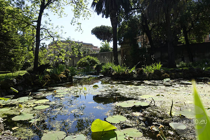 Las flores, de gran tamaño (superiores a 20 cm), presentan tonos rosados y desprenden un aroma característico similar al del anís. Sus frutos suelen utilizarse con fines decorativos. Esta planta es considerada sagrada en religiones como el hinduismo y el budismo, y en la India es uno de los símbolos nacionales. En los estanques donde habita la flor de loto ocasionalmente puede verse la tortuga pintada (Trachemys scripta). Este reptil, llamado así por los dibujos distintivos en los laterales de su cabeza, proviene de América. Es uno de los reptiles más comercializados en Italia y figura entre las 100 especies invasoras más peligrosas del mundo. Volvemos sobre el camino recorrido para poner el broche final al paseo por el jardín, para lo cual nos disponemos a visitar el museo Botánico albergado en el Palazzo delle Conchiglie.