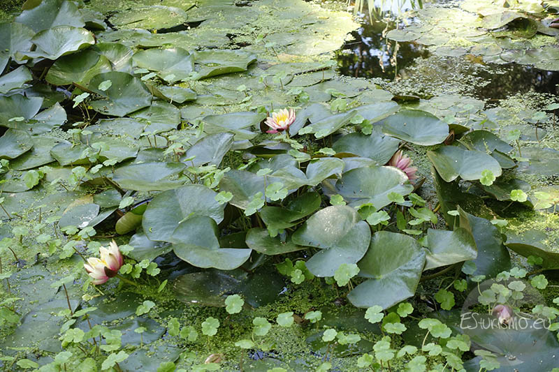 De igual manera aquí vemos un pequeño estanque artificial, a cuyos lados se distribuyen plantas típicas de zonas de gran altitud originarias de los Alpes Apuanos y de los Apeninos Tosco-Emilianos, y especies propias del paisaje mediterráneo, como un ejemplar centenario de olivo. En el lago crece la flor de loto (Nelumbo nucifera) originaria de Asia que es una planta acuática de crecimiento veloz, común en aguas tranquilas y poco profundas. Sus hojas, sostenidas por largos tallos que pueden superar el metro por encima del agua, alcanzan hasta 60 cm de diámetro. Poseen una textura cerosa y que repelen el agua, lo que permite que las gotas resbalen y la superficie se mantenga siempre limpia y reluciente.