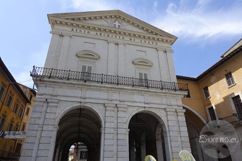 La Piazza XX Settembre es el contrapunto en este lado del río a la Piazza Garibaldi, situada en la otra orilla y unidas por el Ponte di Mezzo. En aquella primera encontramos tres edificios destacables: presidiendo la plaza está la Logge di Banchi, a la derecha el Palazzo Gambacorti que acoge el ayuntamiento, por lo que los pisanos llaman a la plaza Piazza del Comune, y que es un elegante edificio gótico pisano con una doble hilera de ventanas ajimezadas e inscripciones y escudos de armas que adornan su fachada. Finalmente, a la izquierda se levanta la torre del reloj del Palazzo Pretorio, que ahora alberga la biblioteca municipal. Estos dos últimos edificios ya lo vimos en nuestro recorrido por los “lungarnos” Gambocorti y Galileo Galilei.