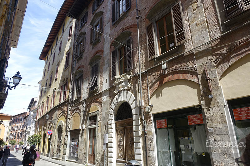 El siguiente edificio que destacamos es el palacio Manetti que conserva restos medievales visibles en su estructura de piedra y una torre posterior con una bífora de mármol. A lo largo de los siglos fue reformado y pasó a manos de la familia Manetti en el siglo XVII. Frente a él, finalmente, destacamos el palacio Bertolli Carranza, creado a partir de edificaciones levantadas tras 1195 por la familia Del Testa, quienes eran comerciantes pisanos. Esta antigua casa-torre se transformó con el tiempo en una elegante residencia nobiliaria, ampliada en 1764 por Alessandro Del Testa y renovada luego, en 1885, por Livio Carranza.