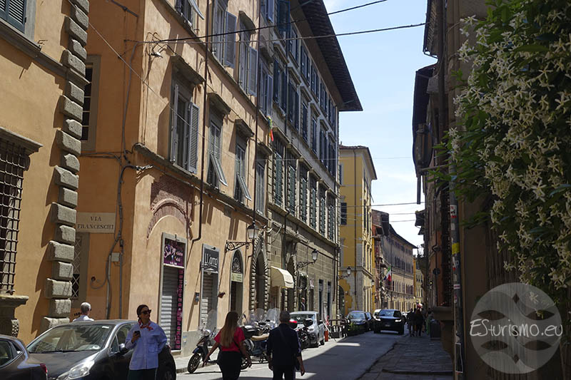 Más adelante se alza el palacio Franceschi, actual sede del Banco de Italia. Su diseño neoclásico, obra del arquitecto Ignazio Pellegrini en el siglo XVIII, conserva frescos de Tempesti, Tarocchi y Bezzuoli. Un poco más adelante aparece el palacio Triglia, conocido en época medicea como “de la Abundancia” por albergar antiguos almacenes de grano con silos de ladrillo. Hoy luce una fachada con escudo heráldico.