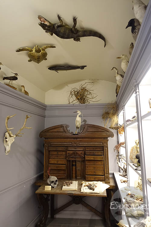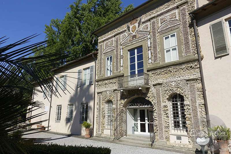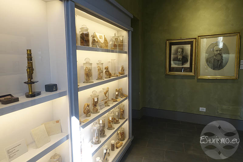 En una de las salas podemos ver parte de una colección de objetos naturales y artísticos, creada con fines educativos y para registrar los viajes de sus prefectos, cuyo origen hay que buscarlo en el siglo XVI, cuando el Jardín albergaba una galería que seguía el modelo de las Wunderkammern europeas (Gabinetes de las maravillas). Allí se exhibían curiosidades como cocodrilos disecados, corales, semillas, cuernos e incluso una momia. Los Minerales y rocas se guardaban en armarios protegidos para ser vistos sin ser retirados. Los inventarios del siglo XVII dan testimonio de la colección que albergaba este edificio, conocido como “casa de las conchas”. De aquella colección hoy sólo quedan pocas piezas conservadas en el Museo de Historia Natural de Calci. Entre ellas sobresale el célebre cráneo con coral, una creación engañosa que logró despertar un enorme interés en la mentalidad moderna. También se documenta una rica biblioteca de textos botánicos y manuscritos ilustrados, elaborados por artistas bajo la dirección de Casabona y Malocchi, custodiados en el valioso “Estudio”, un mueble adornado con el escudo de los Medici.