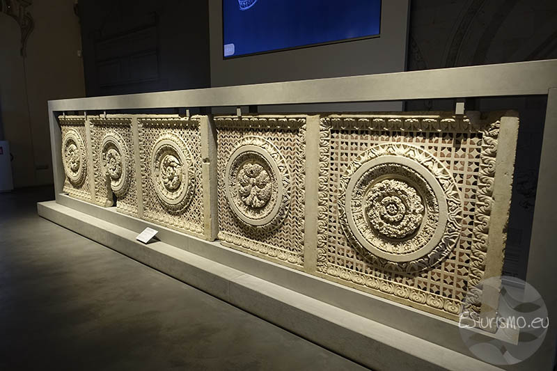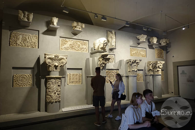 En la pared derecha puede verse un capitel firmado por el artista islámico Fath, también responsable de trabajos similares en las mezquitas de Córdoba y Medina Azahara, en Andalucía (España). En el muro opuesto se encuentra una gran pila de bronce con inscripciones, originaria de la sacristía de la catedral, considerada igualmente una obra islámica, aunque probablemente de procedencia asiática. Además, en una vitrina situada junto a la pared de la entrada se expone una caja de marfil en la que confluyen influencias islámicas y bizantinas. Finalmente, el gran biombo con incrustaciones geométricas que antiguamente cerraba el presbiterio del Baptisterio refleja tanto la huella del arte islámico como la de los escultores de mármol romanos de la época.