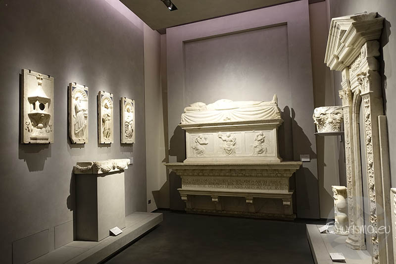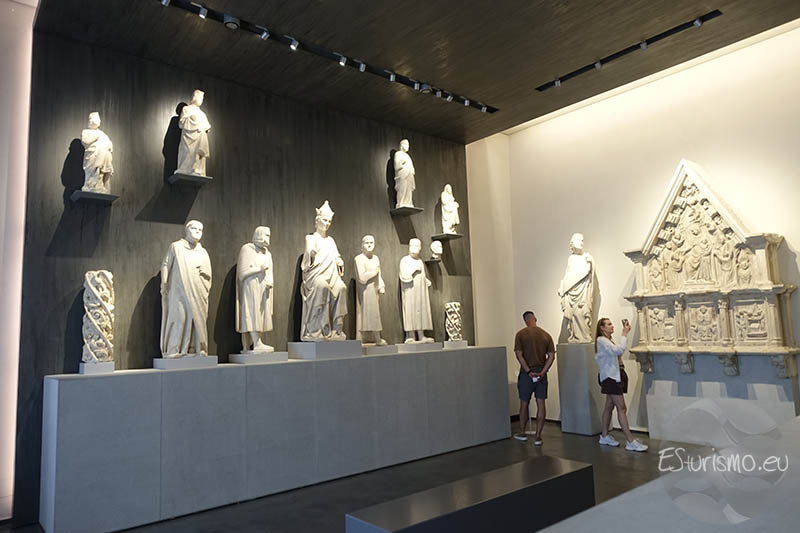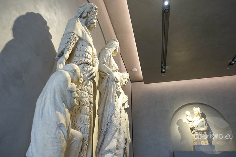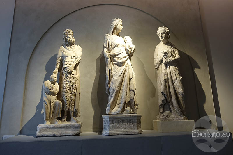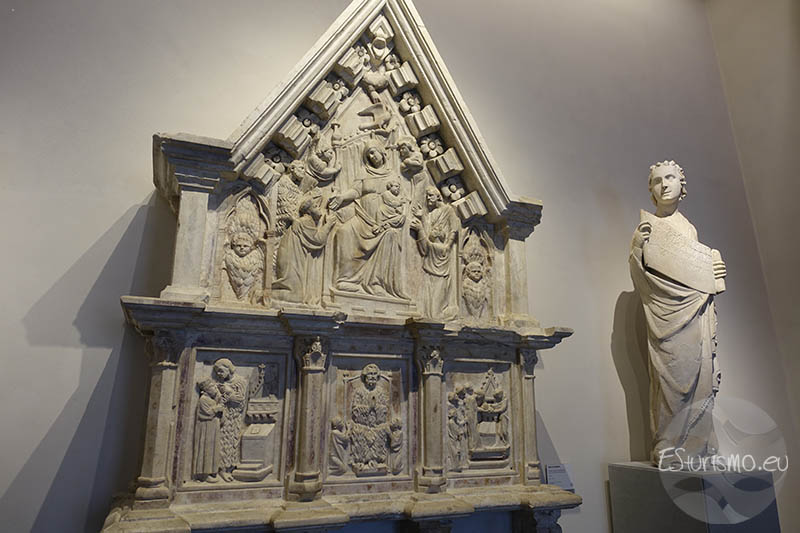 Algunos fragmentos menores atribuidos a Nicola se exponen en la pared de acceso, mientras que en el claustro pueden verse la Virgen con el Niño y otras imponentes esculturas de medio cuerpo creadas por Giovanni para los espacios más amplios del conjunto.