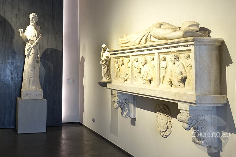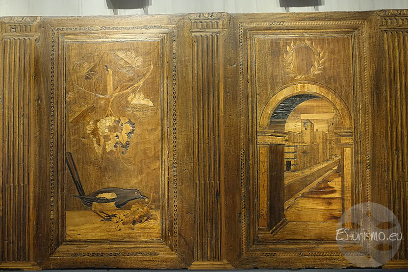Ascendemos ya a la planta superior, donde desembocamos en la sala 12 dedicada a las marquesinas y tallas de madera. Para el culto, un edificio cristiano sagrado necesita mobiliario litúrgico, imágenes, ornamentos, vasos y libros. Esos objetos solían fabricarse con materiales más livianos, como la madera, de los que el museo conserva ejemplos renacentistas y post renacentistas, que abarcan desde los tradicionales relieves tallados hasta refinadas marqueterías planas.