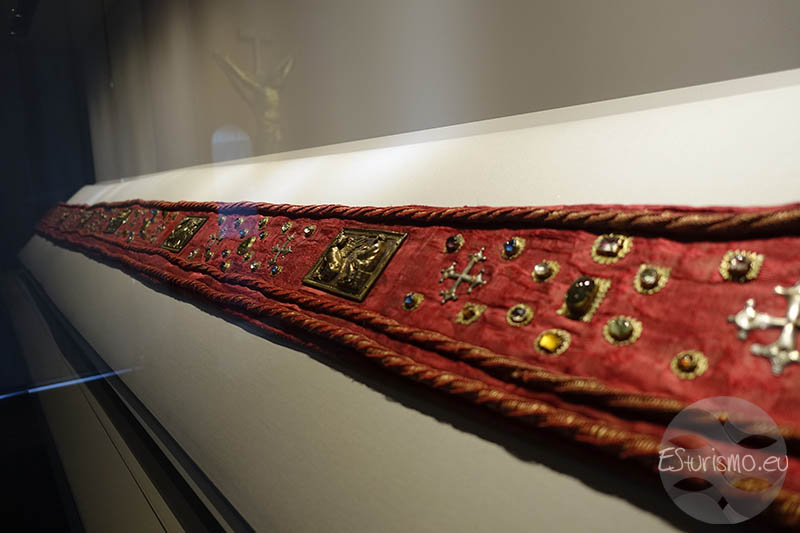 En este espacio también se exponen notables textiles que, por sus raíces litúrgicas y medievales, simbolizan la dignidad imperial. Se exhiben, por ejemplo, suntuosas casullas confeccionadas con telas de gran calidad, encargadas por la familia Medici y, en ocasiones, inspiradas en modelos orientales; así como espléndidas capas pluviales bordadas, fechadas entre los siglos XIV y XVI. Entre las piezas más destacadas figuran un palio de altar bordado para el obispo de Chipre en 1277, una capa pluvial del siglo XIV tradicionalmente atribuida al papa Celestino V (que consagró la catedral en 1318), todas ellas ricamente decoradas.