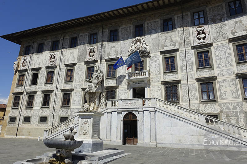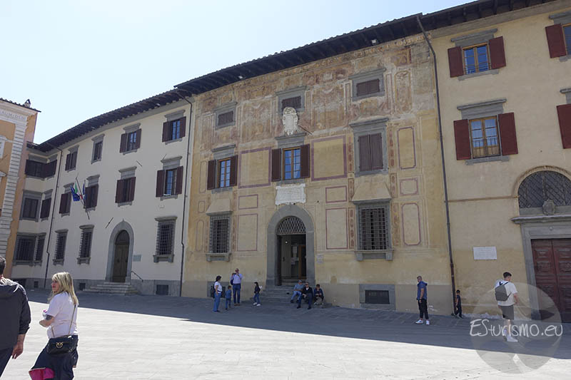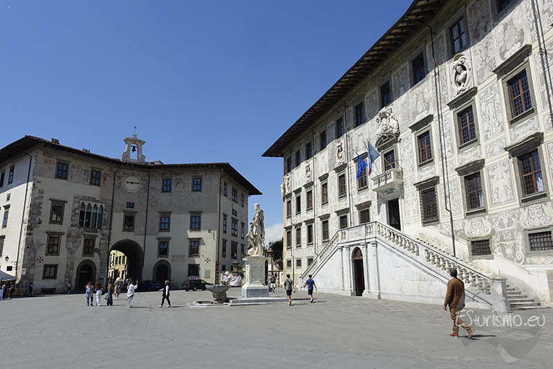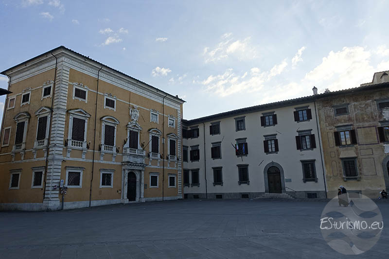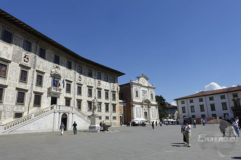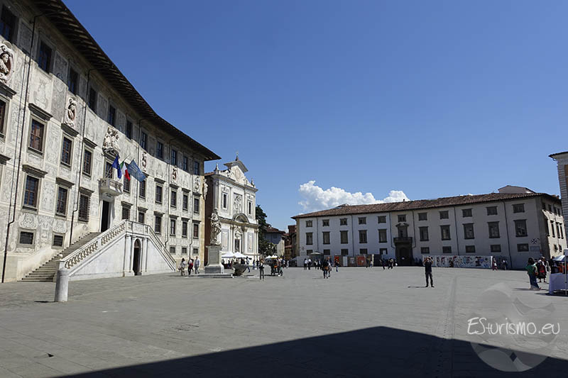 En 1254, uniendo construcciones preexistentes, se construyó el palacio del Pueblo y de los Ancianos, hoy palacio de la Carovana. Ya en el siglo XIV se emprendieron expropiaciones y demoliciones con el propósito de abrir una gran plaza que se denominó Platea Pisani Populi, en la que también se realizaban las ejecuciones públicas. Sin embargo, la plaza que vemos hoy es el resultado de una amplia intervención de reordenación urbana impulsada por Cosme I de Médici en el año 1558. Para ello, encargó el proyecto a Giorgio Vasari, quien reorganizó los edificios que daban a la plaza, muchos de los cuales se encontraban, según sus propias palabras, “en confusión y desorden”, fusionando y regularizando antiguas construcciones medievales.