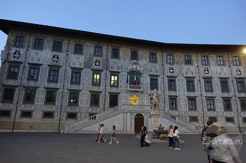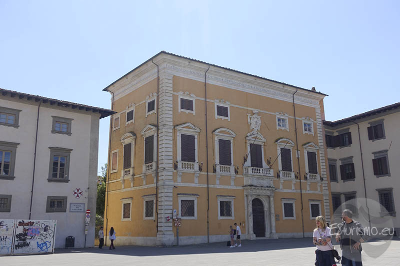 El Palazzo dei Cavalieri di Santo Stefano o Palazzo della Carovana es de origen medieval, cuando originalmente tenía aspecto de torre, de cuya época aún conserva vestigios visibles en la fachada que da a Via Consoli del Mare. Este edificio fue restaurado y reconstruido por Giorgio Vasari por encargo del duque Cosme I de Médici, quien en 1558 decidió crear la Orden de san Esteban y dotarla de una sede para su flota marítima. El edificio tomó el nombre de palacio de la Carovana, en referencia al período de formación (la “carovana”) que debían cumplir los caballeros de la orden. No fue hasta 1561 cuando Vasari viajó a Pisa para estudiar la plaza y la disposición de los antiguos edificios, y en apenas dos años (entre 1562 y 1564) el nuevo palacio ya servía como sede de la milicia.
