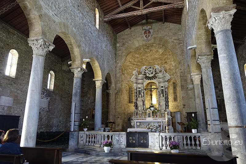 La iglesia de san Sisto en Cortevecchia fue construida en el año 1087, poco después de la conquista pisana del puerto de Al Mahdiya (Túnez). Este templo conmemora las victorias militares de la República de Pisa, celebradas cada 6 de agosto, día dedicado al santo. El nombre Cortevecchia recuerda de nuevo que en la Alta Edad Media aquí se encontraba el centro político de la ciudad, donde residía el administrador del rey longobardo. A pesar de las numerosas restauraciones (a mediados del siglo XV, a comienzos del XVII y en la década de 1760), la iglesia ha conservado en gran parte su aspecto medieval. La fachada, dividida en tres secciones, está decorada con arquerías ciegas y cuencos cerámicos en su mayoría procedentes del Mediterráneo occidental. En la parte inferior se abren tres puertas y una ventana bífora añadida recientemente. El muro lateral izquierdo se mantiene original, construido con pequeños bloques de piedra caliza y coronado con una decoración similar a la de la fachada principal.