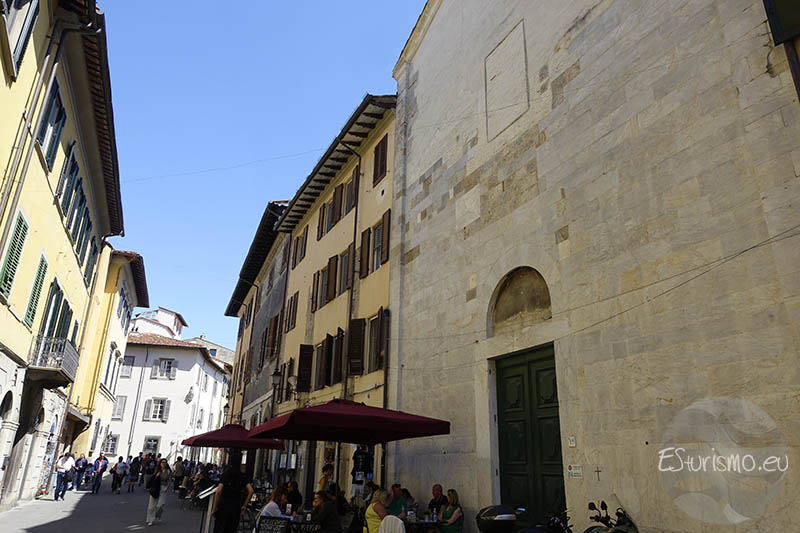 Desde aquí parte la Via Ulisse Dini (cuya estatua se encuentra en un lateral) que une Borgo Stretto con la Piazza dei Cavalieri, y cuyo nombre proviene del matemático pisano Ulisse Dini (1845-1918). En tiempos etruscos, su trazado correspondía a un canal junto al cual se asentaban viviendas de élite, mientras que de la etapa romana se sabe poco, aunque se cree que existían jardines y residencias privadas (domus). Durante la Edad Media se llamó “via de fabricis” por los numerosos talleres de herreros que allí trabajaban, y que comunicaba la iglesia de los santos Felice y Regolo con la de san Sebastiano alle Fabbriche Maggiori, ubicada aproximadamente donde hoy se levanta la iglesia de san Esteban. Desde el siglo XII surgieron casas-torre y edificios públicos, de los que aún se conservan algunos arcos. Entre los siglos XV y XVI, la calle cambió notablemente, ya que las antiguas construcciones medievales de las casas-torre dieron paso a palacios como el del Capitán o, más tarde, a la actual iglesia de san Esteban de los Caballeros.