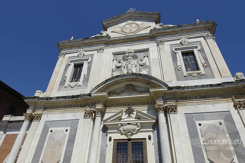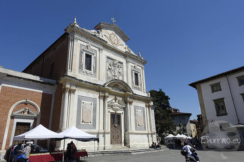 La vecina Chiesa di Santo Stefano dei Cavalieri (iglesia de san Esteban de los Caballeros) también fue mandada construir por Cosme I de Médici en 1565 como templo principal de la Orden de los Caballeros de Santo Stefano, creada para luchar contra la piratería turca. El diseño fue de Giorgio Vasari, quien sustituyó una iglesia más antigua. Las obras concluyeron en 1567 y la consagración tuvo lugar en 1569. A lo largo de los siglos, el edificio fue ampliado y modificado: entre 1570-72 se añadió el campanario, entre 1683-91 se construyeron los cuerpos laterales y se propusieron reformas que nunca se ejecutaron. En el siglo XIX, tras la disolución de la Orden, Gaetano Niccoli adaptó los espacios laterales hasta darles su forma actual. La fachada de mármol blanco, obra de Don Giovanni de’ Medici y Alessandro Pieroni, exhibe los escudos de los Médici y de la Orden.