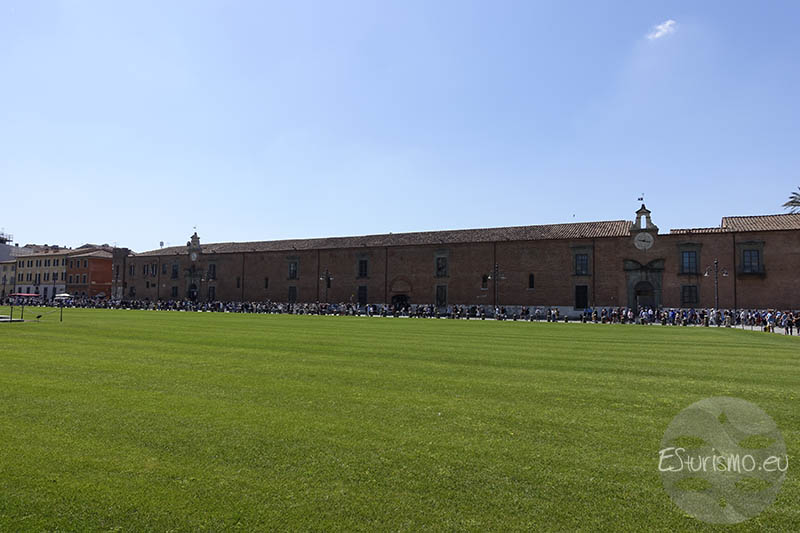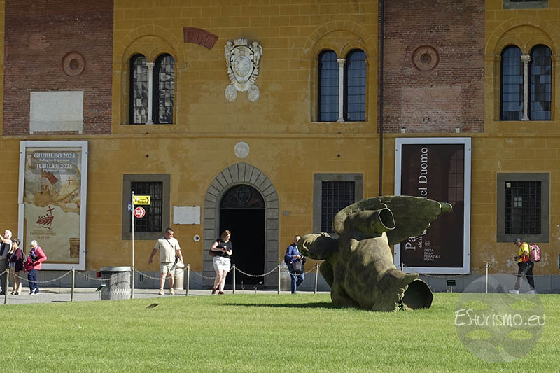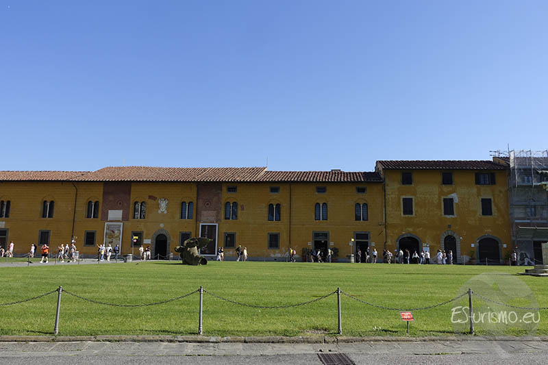 Si seguimos caminando hacia el este nos toparemos con el Palazzo della Opera della Primaziale Pisana, antiguo edificio que fue la sede de la Opera Primaziale Pisana, organismo que gestiona la Catedral de Pisa y su complejo monumental, además de ser la corporación que dirigió las obras de entre 1990 y 2001 que salvaron la Torre de Pisa. Actualmente la institución sólo conserva algunas oficinas, como las del sector vigilancia y supervisión (las oficinas administrativas y el Cabildo de la Primaziale se trasladaron en 2012 a su nueva sede en la Piazza Arcivescovado). Además de las taquillas para adquirir los boletos para entrar en los diferentes monumentos de la plaza. Desde 2014, también alberga en ocasiones exposiciones temporales de arte.