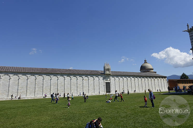 La Piazza dei Miracoli, situada fuera del núcleo central medieval de Pisa, es una gran explanada de césped de aproximadamente 8,87 hectáreas y que contiene un conjunto monumental declarado Patrimonio de la Humanidad por la UNESCO desde 1987. Se trata de cuatro joyas de la arquitectura religiosa medieval que representan una narrativa simbólica de la vida humana: el bautismo como origen, la iglesia como vida, la torre como llamada y vigilancia, y el camposanto como descanso eterno. El curioso nombre de la plaza proviene del escritor Gabriele D’Annunzio, quien en su novela “Forse che sì, forse che no” (1910) la llamó “prato dei Miracoli” (prado de los milagros) por la extraordinaria armonía de los monumentos que alberga.