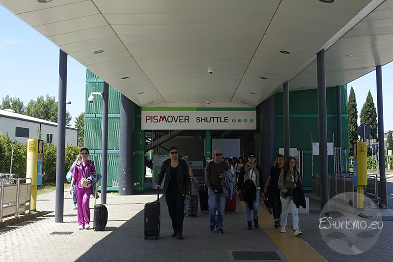 La manera más común para llegar a Pisa es a través de su aeropuerto, antigua base militar, que enlaza con muchas capitales europeas gracias a la gran oferta de vuelos low cost. El aeropuerto internacional de Pisa-Galileo Galilei (PSA) se sitúa muy cerca de la ciudad, a apenas unos dos kilómetros, siendo en la actualidad el undécimo de toda Italia en número de pasajeros, concretamente da servicio a más de 5,6 millones al año. A pesar del volumen de tráfico que mueve, las instalaciones son pequeñas, lo que facilita mucho las cosas. La manera más recomendada, rápida y económica para llegar al centro de Pisa es a través del llamado Pisamover, tren automático sin conductor que en apenas unos 5 minutos te dejará en Pisa Centrale. Para llegar a la estación de Pisamover es necesario salir de la terminal y girar a la derecha, inmediatamente veremos indicaciones que deberemos seguir. El tren pasa cada media hora, a excepción de la primera y ultima hora del día, cuando la frecuencia pasa a ser cada hora. Su horario es de lunes a domingos, desde las 6 de la mañana hasta las 12 de la noche.