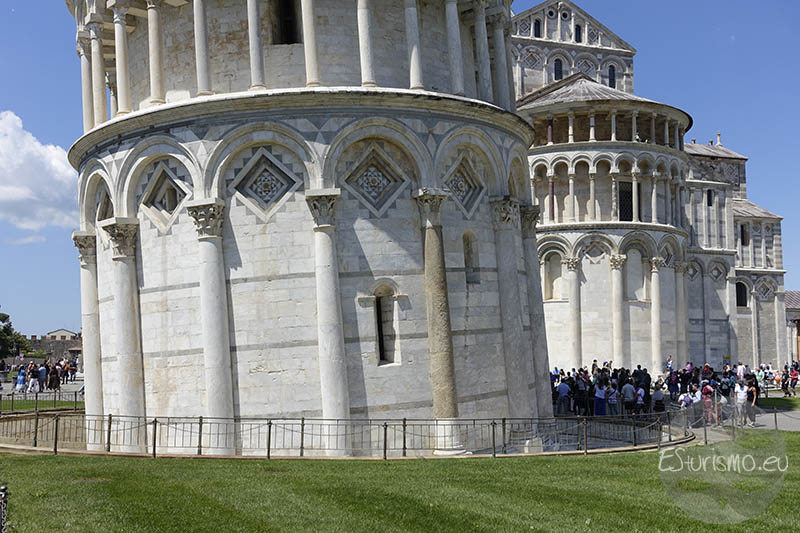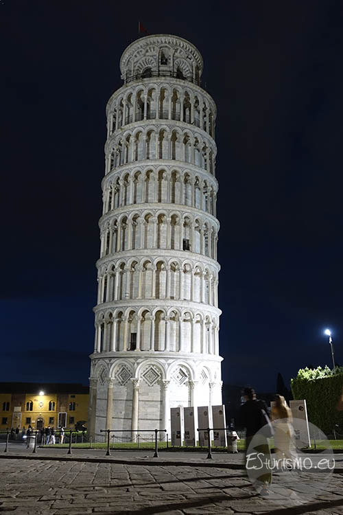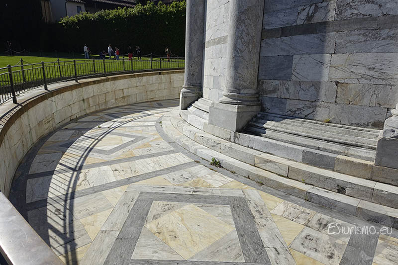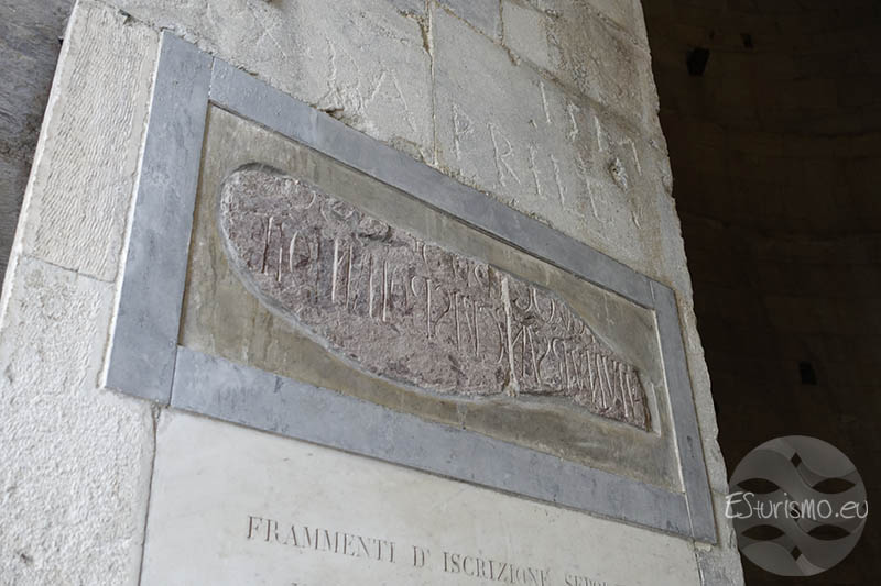 A nuestra izquierda, en el lateral y zona superior de la puerta que contiene los escalones que llevan a la cima, vemos otras dos inscripciones. En una de ellas, situada bajo una inscripción dice lo siguiente: “Fragmentos de una inscripción funeraria con el nombre de Bonanno da Pisa, constructor de este admirable edificio, que fueron desenterrados accidentalmente en 1338 y gracias al cuidado del artesano caballero Carmignani, fueron depositados aquí en honorable memoria del ilustre artista.”