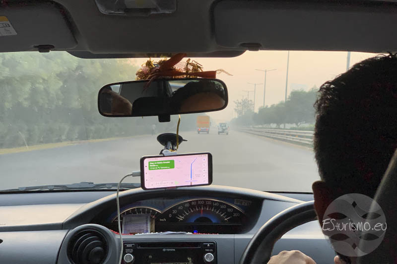 Para llegar hasta Agra tenemos varias opciones, una es llegar en avión gracias al aeropuerto de la ciudad que conecta con varios puntos de la India, entre ellos Delhi. Otra alternativa es contratar una de las muchas excursiones de uno o varios días desde otras ciudad, sobre todo Delhi, que incluyen transporte, entrada al Taj Mahal y guía. Nosotros nos decantamos por contratar un conductor con coche desde Delhi, sin guía, para hacer el trayecto de ida y vuelta en el mismo día. Si quieres que te demos sus datos de contacto, escribimos por privado y os pasamos su número de teléfono y email. Nosotros salimos muy temprano en la mañana e hicimos el recorrido en casi 4 horas, incluidas las paradas. El viaje se hace bastante pesado, por lo que recomendamos dormir en Agra y tener más tiempo para ver la ciudad y sus atractivos, incluido el Fuerte Rojo.