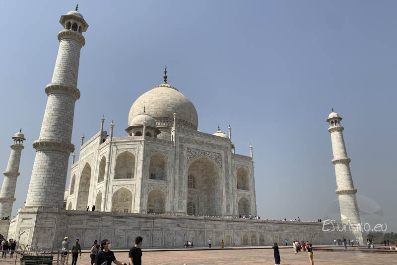 El Taj Mahal es un monumento precioso, nos gustó muchísimo, la armonía de sus formas es prácticamente perfecta, además son dignos de mención sus detalles, como las exquisitas taraceas que forman letras árabes, flores, motivos geométricos, etc. Por cierto, prepárate para que te miren descaradamente, incluso te pedirán hacerse fotos contigo si tienes rasgos de Europa del norte, es decir, pelo rubio, ojos claros, tez blanca… para los indios este tipo de personas es muy exótica. Cada uno decide como manejar la situación, nosotros te recomendamos que te lo tomes con humor y sentido común.