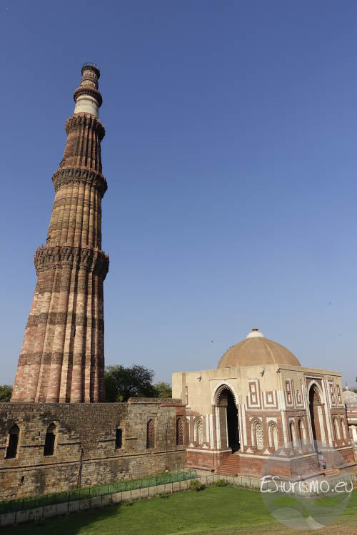 Y nos dirigimos ya al último punto destacable del complejo: el Alai Minar, cuya construcción fue iniciada en el 1315 por Alau'd-Din Khalji, con la intención de hacerla dos veces más grande y alta que el Qutab Minar, para así mostrar a todos la supremacía y el poder de este sultán de la dinastía Khalji, así como para conmemorar su victoria sobre las campañas en Deccan. Pero este gobernador solo pudo completar el primer piso que ahora tiene una altura existente de 24,5 metros, ya que murió en 1316. Fue parte de su gran proyecto para expandir la mezquita Ouwwat-ul-lslam al doble del tamaño original.
