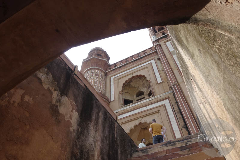 Tras esta reflexión, procedemos a entrar a su interior, el cual consta de una cámara central cuadrada, rodeada por ocho salas a su alrededor que contienen un elaborado techo de yeso. En aquella cámara se sitúa en el centro un cenotafio que en el momento de nuestra visita estaba siendo objeto de obras de conservación y renovación. Hay que señalar que las verdaderas tumbas de Safdarjung y de su esposa se encuentran debajo del cenotafio, en la cámara subterránea del mausoleo, a la que no se puede acceder.