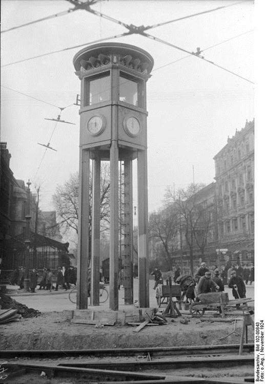 Como decimos, para 1950 Berlín era ya la tercera ciudad más importante del mundo, tras Londres y Nueva York, y esta plaza era su corazón. Por sus calles transitaban alrededor de 600 tranvías y, con la aparición del automóvil, el tráfico fue tan intenso que se instaló aquí, en el año 1920, el primer semáforo de Europa, cuya réplica exacta podemos ver hoy en día. Con respecto a esto no hay que olvidar que en el año 1869 se instaló en Londres un semáforo de dos colores (rojo y verde) que funcionaba con gas (para la noche) y unos brazos (para el día). Al poco de ser instalado, a los dos meses, explotó matando al policía que controlaba el mecanismo de luces a través de una palanca situada en su base.