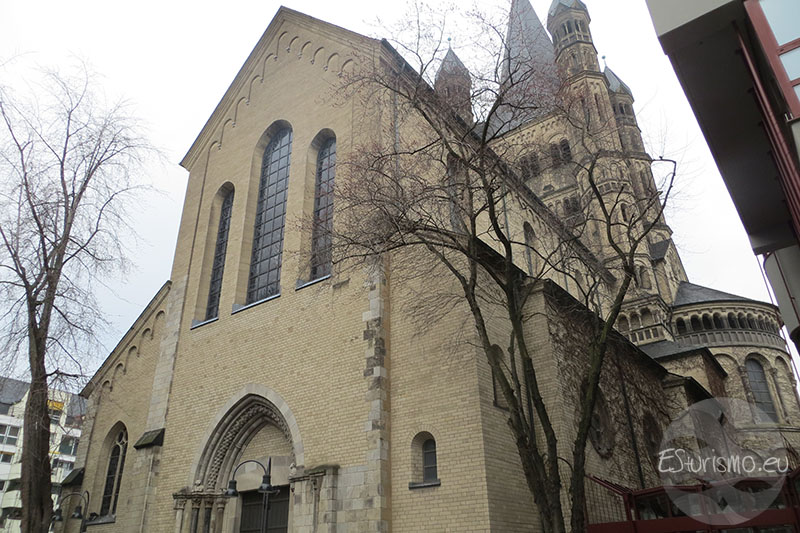 Su extremo oriental posee forma de hoja de trébol formado por tres ábsides alrededor del crucero, similar a la de St. Maria im Kapitol. A lo largo de los siglos la iglesia sufrió daños por incendios y tormentas, pero fue durante la II Guerra Mundial cuando el templo casi es destruido por completo, sobre todo se redujeron a cenizas los techos, la torre, la nave, la sacristía y el ábside norte.