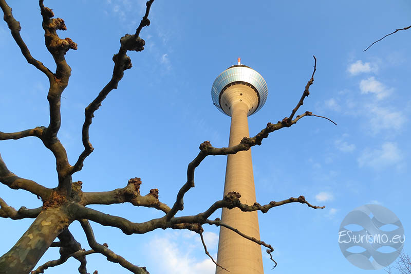 Se encuentra muy cerca del Parlamento de Renania del Norte-Westfalia, en el extremo oriental de la zona del puerto y a unos pocos cientos de metros de la ciudad vieja que se encuentra al suroeste. Se puede llegar hasta aquí mediante las paradas de tranvía Stadttor y Landtag/Kniebrücke de las líneas 704 y 709, además de estar también conectada con varias líneas de autobuses. Esta torre de telecomunicaciones, con una altura de 240,5 metros es el edificio más alto de la ciudad, se comenzó a construir en el año 1979 y fue finalizada en el 1981.