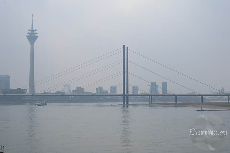 En cualquier caso, las ventanas inclinadas hacia el exterior son de 45 milímetros de espesor de vidrio laminado de seguridad. Como decimos desde aquí se obtienen muy buenas vistas de la ciudad y es una buena oportunidad de ver Düsseldorf de una manera totalmente diferente. Concretamente podemos admirar a vista de pájaro la zona del Medienhafen, el Rin, la ciudad vieja, etc...