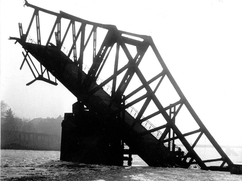 En marzo del año 1945 este puente, junto con los demás, fueron bombardeados y destruidos por los aliados en la II Guerra Mundial. Unos años después fue restaurado añadiéndosele un ascensor. Como curiosidad puede verse unas plaquitas que indican la altura y el año en que llegó a estar el agua del río antaño.