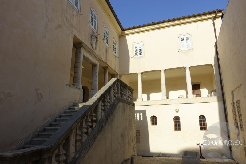 Este edificio fue utilizado por los obispos de Parentium como residencia durante mil cuatrocientos años. Durante ese período el palacio sufrió varias reconstrucciones y reformas, la mayoría de esos cambios fueron eliminados para recuperar el aspecto original del edificio durante las obras de restauración de 2001. De esta manera el aspecto del pórtico que vemos actualmente se remonta a finales del siglo XVII, en tiempos del obispo Mazzoleni, quien también encargó la construcción de la elegante escalera.