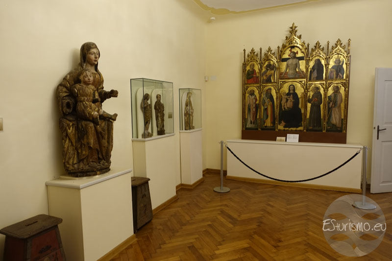 La siguiente sala alberga la colección de pinturas y relieves de los siglos XIV y XV, entre los que destaca por su calidad artística dos de ellos: el políptico de la Virgen y los santos pintado por Antonio Vivarini en Venecia en el año 1440. En esa obra, además de las características predominantes góticas, la imagen de la Virgen presenta también algunos rasgos renacentistas. En la pared de enfrente se sitúa el tríptico de 1529, una obra sencilla y casi rústica que proviene de la villa croata de Hum, concretamente de la iglesia de san Jerónimo. Entre los relieves destaca una Virgen con el Niño de alrededor del 1420 y proveniente de Europa Central.