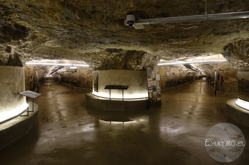 En esta visita vamos a adquirir un ticket combinado para poder entrar a dos sitios interesantes desde el punto de vista histórico y turístico: la Zerostrasse y el Pulski Kaštel. El recorrido se inicia por los túneles de los refugios subterráneos que conforman la Zerostrasse, construida en vísperas de la I Guerra Mundial. Pula era un importante centro militar y estratégico para la monarquía Austrohúngara, ya que la ciudad era su principal puerto naval donde tenía su base un importante número de barcos de su flota. Por eso, se decidió dotar a toda la zona de Pula con un complejo sistema defensivo como fuertes, baterías, posiciones de ametralladoras, etc. que se extendía desde la costa occidental hasta la oriental de Istría, bloqueando así todos los accesos a la ciudad.