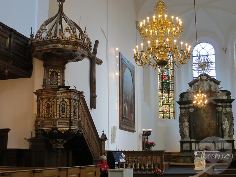 En el altar mayor vemos un retablo barroco, el cual procede de la capilla del antiguo castillo de Christiansborg, que contiene una pintura con el tema de la Ascensión del año 1727. En el centro del coro vemos una pila bautismal de mármol hecha en 1827 por el famoso escultor danés Bertel Thorvaldsen.