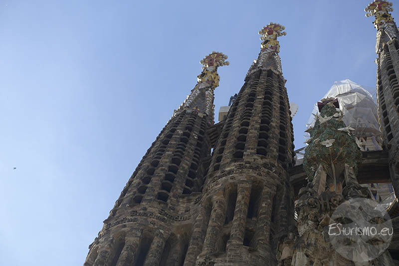 Iniciamos el recorrido por este famoso monumento comenzando por su parte externa. Lo primero que salta a la vista son las torres del templo, las cuales cumplen varias funciones: además de tener un propósito práctico, aportan valor estético y, sobre todo, poseen un profundo significado simbólico. La Sagrada Familia no es un templo convencional, en ella las torres no se limitan a decorar o a impresionar, sino que Gaudí concibió un conjunto de dieciocho torres con una intención simbólica muy precisa: cada una debía tener una identidad propia.