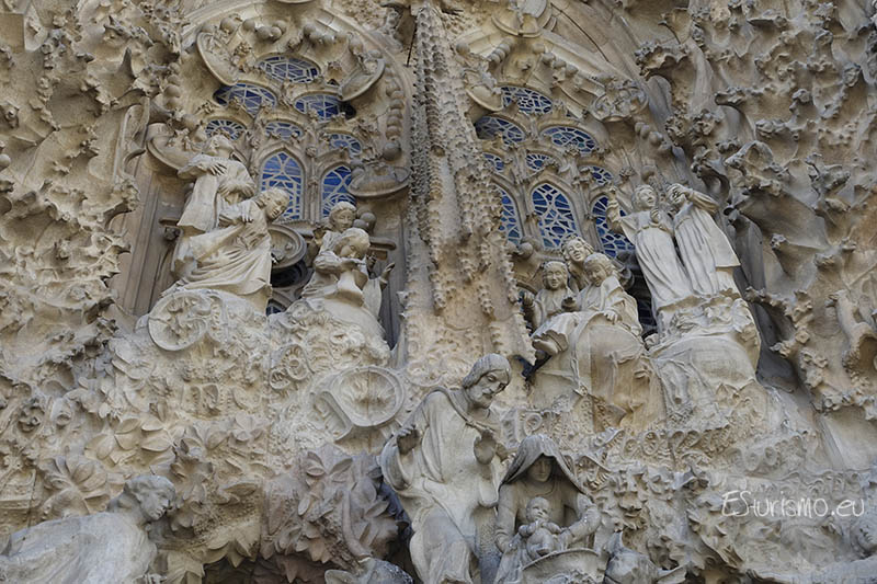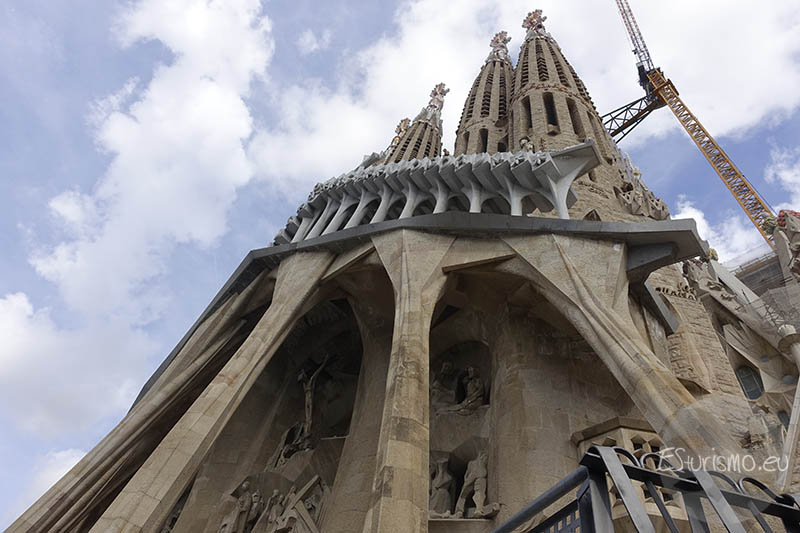 Tras terminar el recorrido por el interior de la Sagrada Familia, incluyendo la posibilidad de ascender a las torres de la fachada de la Natividad o de la Pasión, ahora toca salir al exterior por la portada de aquella última fachada, la de la Pasión. Está dedicada a los momentos finales de la vida de Jesús, y por eso transmite una sensación intensa de sufrimiento, entrega y muerte, en contraste con la vida de la fachada de la Natividad. Estos episodios se representan a través de las doce estaciones del Vía Crucis, mostradas mediante grupos escultóricos muy expresivos y cargados de dramatismo. La ausencia de una decoración excesiva no es casual, ya que busca favorecer la reflexión y la recogida espiritual.