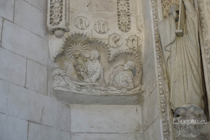 Aquí vemos también una elegante linterna que descansa sobre ocho columnas salomónicas, cada una distinta de las demás. Gaudí encargó las esculturas de este portal a Llorenç Matamala i Piñol (amigo cercano del arquitecto y uno de sus colaboradores más leales), autor de la figura central de la Virgen del Rosario con el niño Jesús, acompañada por san Domingo y santa Catalina. Justo debajo, colocados a ambos lados del portal, se encuentran los profetas y los reyes bíblicos (Isaac, Jacob, David y Salomón). A la izquierda vemos un anciano moribundo que recibe la bendición de Jesús, María y José, simbolizando la muerte de una persona justa.
