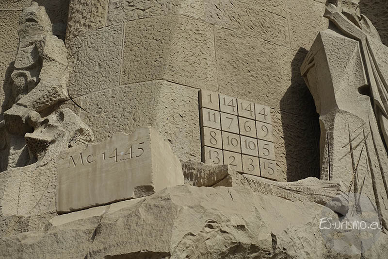 Estas modificaciones vienen de una reinterpretación del cuadrado mágico clásico de Durero, que fue transformado por el escultor Josep Maria Subirachs para adaptarlo al simbolismo de la obra. Además de este valor principal, el cuadrado permite muchas combinaciones distintas que alcanzan el mismo total, lo que lo convierte en un motivo interesante y sorprendente dentro del conjunto escultórico de la fachada. Algunos estudios incluso ven en los números repetidos una firma simbólica del autor o una referencia al texto “INRI”, un acrónimo asociado con la crucifixión de Cristo. En resumidas cuentas, este cuadrado no sólo es un detalle matemático, sino una pieza cargada de significado dentro del relato de la Pasión, integrando arte, fe y simbolismo en un mismo elemento.