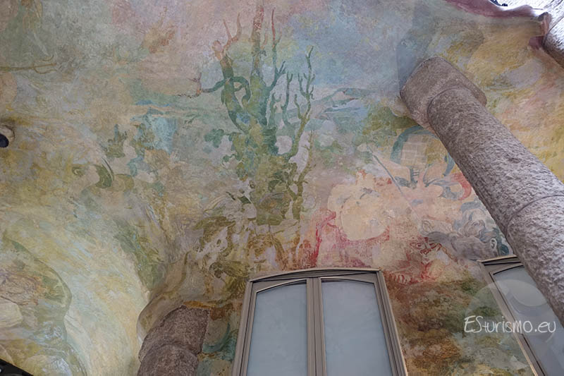 En el vestíbulo del Passeig de Gràcia, los murales recrean el relato de los amores entre Vertumno y Pomona, divinidades vinculadas a las estaciones, los frutos y los jardines, siguiendo la narración de Ovidio en “Las metamorfosis”. En cambio, el vestíbulo de la calle Provença presenta una composición más libre y dinámica, en la que los distintos tapices se funden sin límites claros. Allí conviven representaciones de pecados capitales como la ira y la gula, junto a escenas protagonizadas por héroes de la guerra de Troya y episodios de las aventuras de Telémaco, inspiradas en la Ilíada y la Odisea.