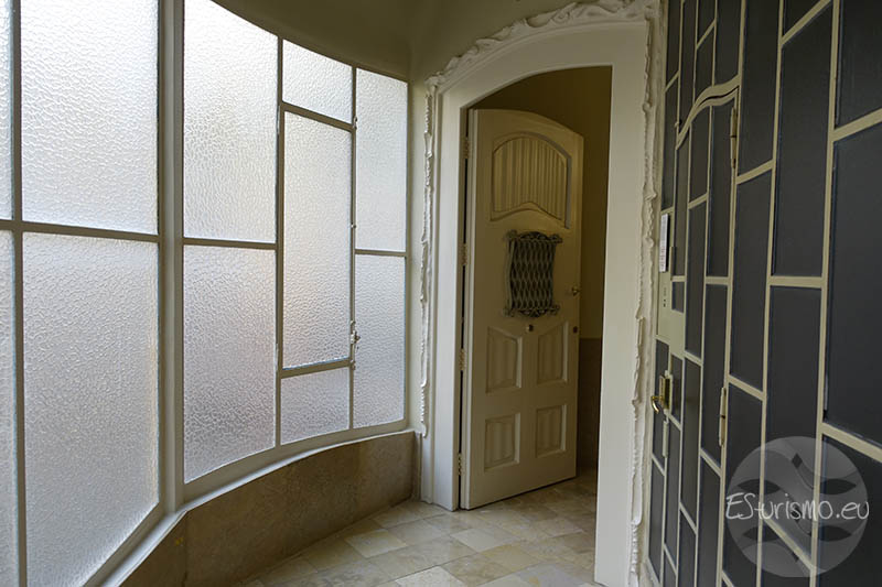 Las puertas funcionan al mismo tiempo como reja y como acceso: la abertura central permitía la entrada de automóviles y los laterales estaban pensados para el paso cotidiano de los residentes. Por su parte, los vestíbulos son espacios amplios, sin ángulos rectos, cuyas paredes presentan acabados que combinan pintura mural con motivos florales y figuras antropomorfas, además de relieves y elementos de yeso. Desde el inicio, Gaudí evitó la separación clara entre estructura y decoración.