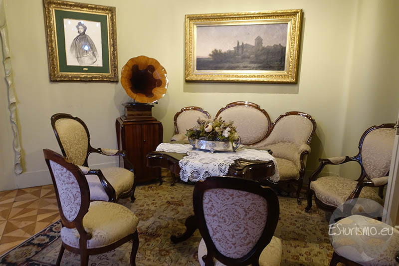 Adosada se encuentra la sala de estar, agradable espacio donde la familia disfrutaría de un té o de una café, mientras charlaban o escuchaban música. La claridad que se cuela por las ventanas ilumina con suavidad las paredes redondeadas, mientras que, por aquel entonces, el ambiente quedaría envuelto por el inconfundible perfume del café recién hecho.